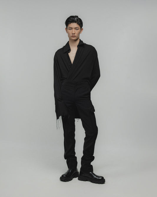 TAPERED EXPOSED POCKET TAILORED TROUSERS