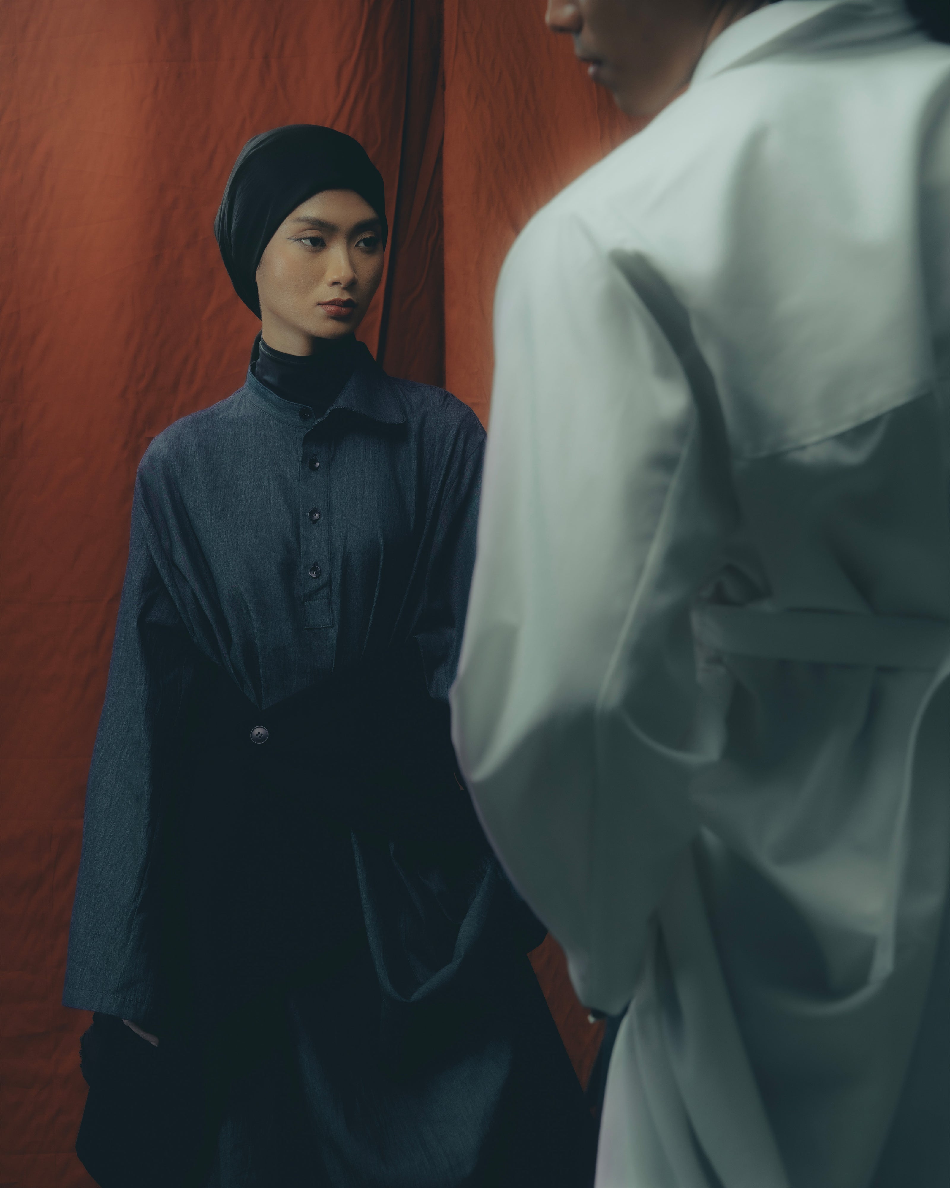 DRAWING INSPIRATION FROM SILAT, THE NUSANTARA MARTIAL ART RENOWNED FOR ITS FLUID YET COMMANDING MOVEMENTS, THE COLLECTION EMBODIES BOTH STRENGTH AND GRACE. TRADITIONAL MALAY GARMENTS SERVE AS ITS FOUNDATION, REINTERPRETED WITH MODERN PRECISION—FEATURING CLEAN LINES, SCULPTURAL DRAPES, AND DYNAMIC LAYERING.