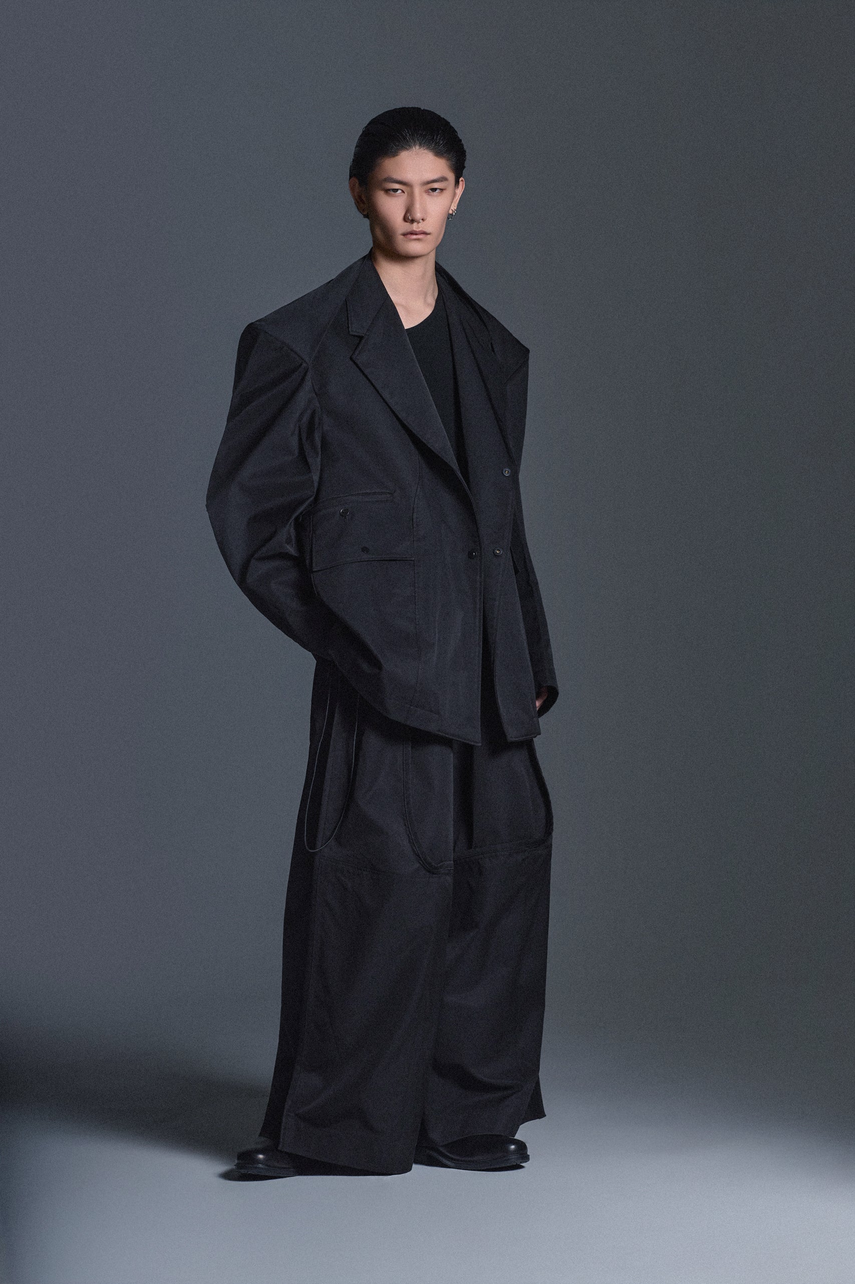 AN OVERSIZED CASUAL BLAZER IN TECHNICAL TWILL GABARDINE. FASTENED WITH MAGNETIC SNAPS, IT FEATURES OVERSIZED POCKETS FOR ADDED FUNCTIONALITY. THE DESIGN IS FINISHED WITH A DISTINCTIVE BACK-NECK DRAPE THAT ADDS DIMENSION TO THE REAR PROFILE.
