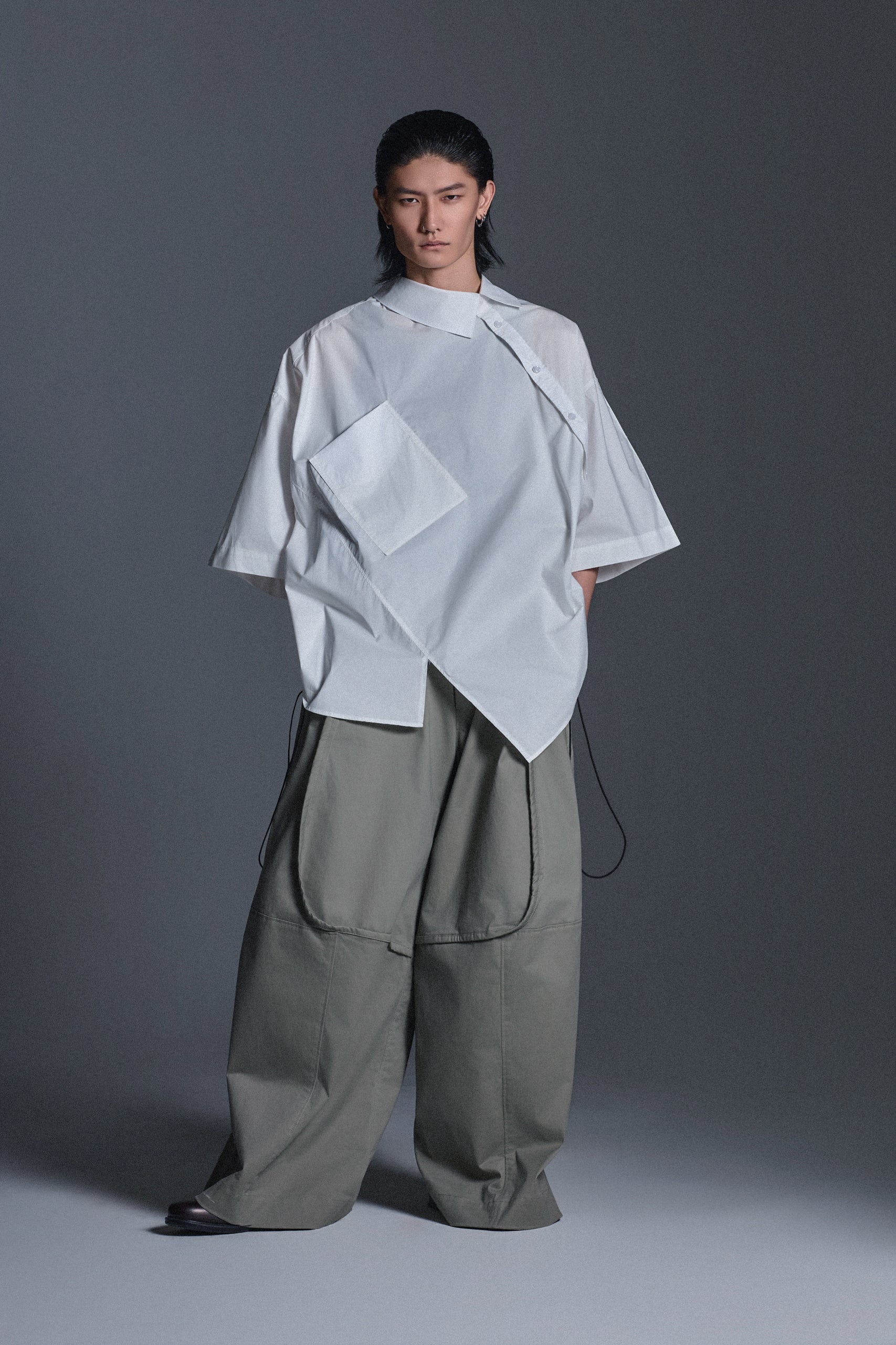 AN OVERSIZED FIT SHORT SLEEVE SHIRT, FEATURING A DISTINCTIVE TWISTED CONSTRUCTION