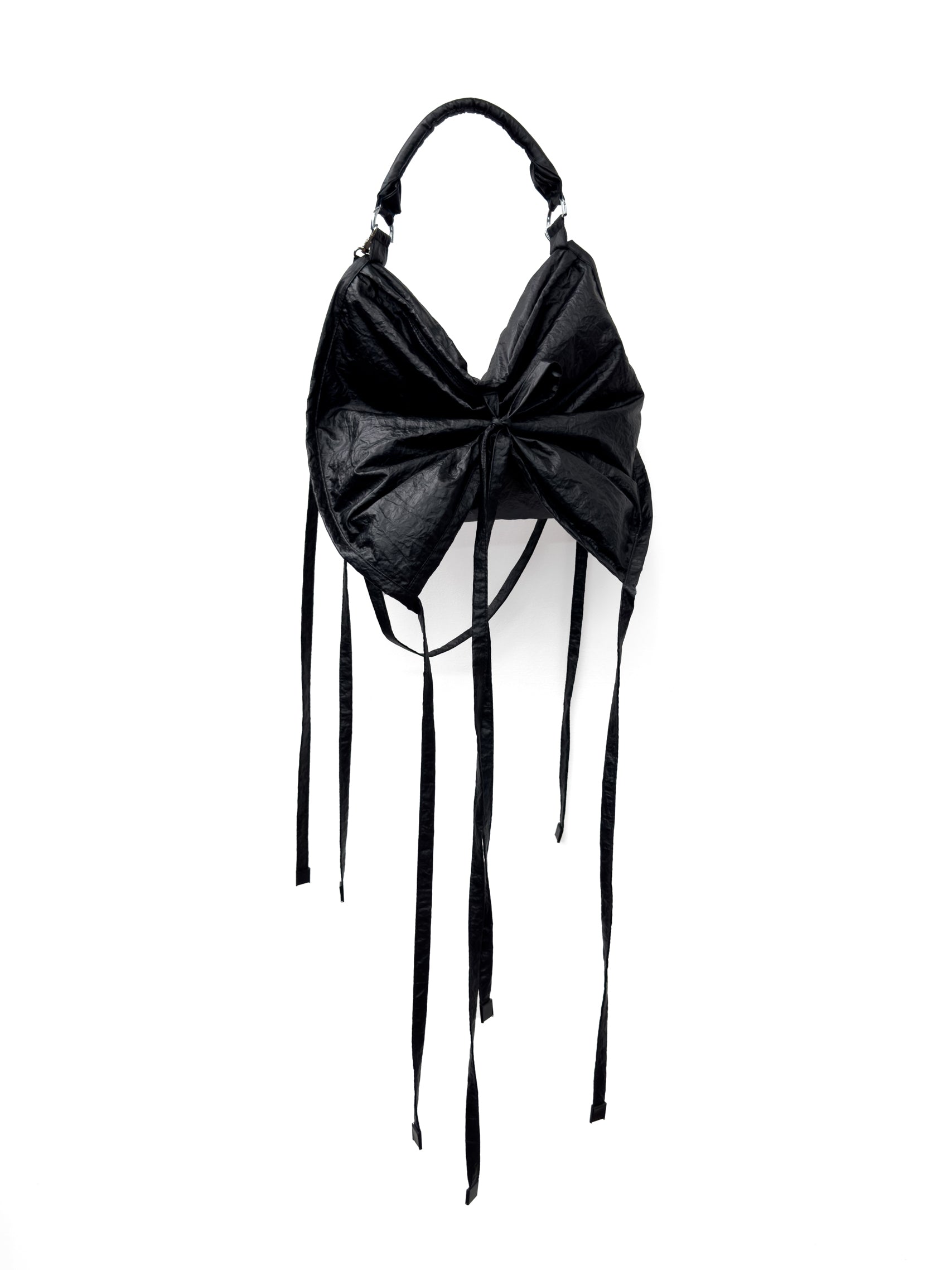 OUR SIGNATURE PUFFER BAG IN OUR NEW WRINKLED PU NYLON MATERIAL, FEATURING THE KW SIGNATURE 'TALI'. THE BAG CAN BE TIED IN DIFFERENT WAYS TO CHANGE IT'S SILHOUETTE.